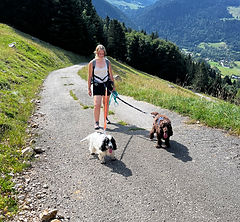 Environ une à deux fois par mois quand le temps le permettra nous organiseront une randonnée d'environ 3-4h. Celle-ci se déroulera le plus souvent en montagne, dans des lieux sécurisés sans trop de dénivelé (400m + et - environ) pour s’adapter à chaque chien et chaque niveau. Un équipement adapté sera obligatoire comme un harnais en Y ou H, encore mieux un harnais demi-dos, le plus adapté pour les randonnées ! Les harnais en T, type Julius seront interdis car non adapté à la morphologie du chien. L'eau, les gamelles, longes, collations, friandises, laisses élastiques seront fournis par mes soins.